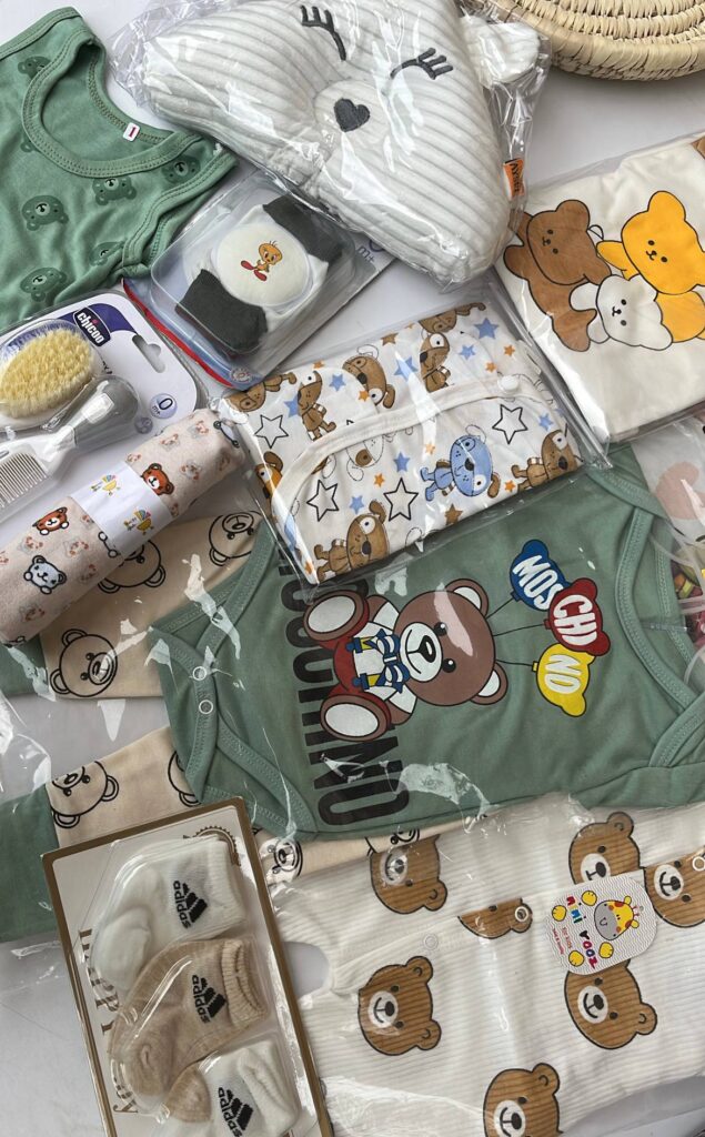 سرویس خواب ۱۲ تکه شامل: تشک گارددار (غلت گیر)،لحاف،تشک بازی،قنداق فرنگی،قنداق سوئیسی(آغوشی)،بالشت،کوسن(بالشت فرمدهی سر)،دستک تشک بازی،سه تکه مسافرتی(تشک و بالشت و پتو)،پتو دورپیچ