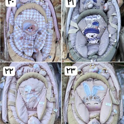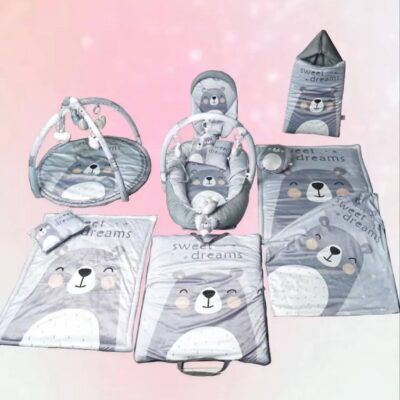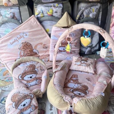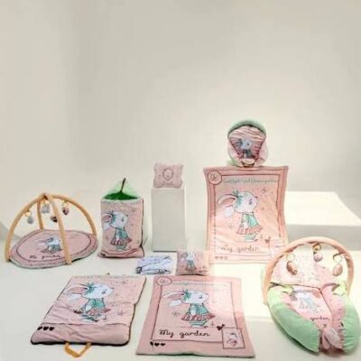 سرویس خواب هفت تکه شامل: تشک گارددار (غلت گیر)،لحاف،قنداق فرنگی،قنداق سوئیسی(آغوشی)،بالشت،کوسن(بالشت فرمدهی سر)،دستک تشک بازی