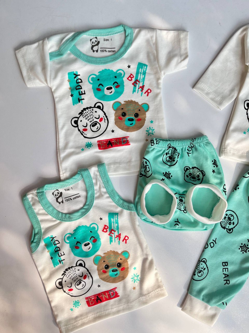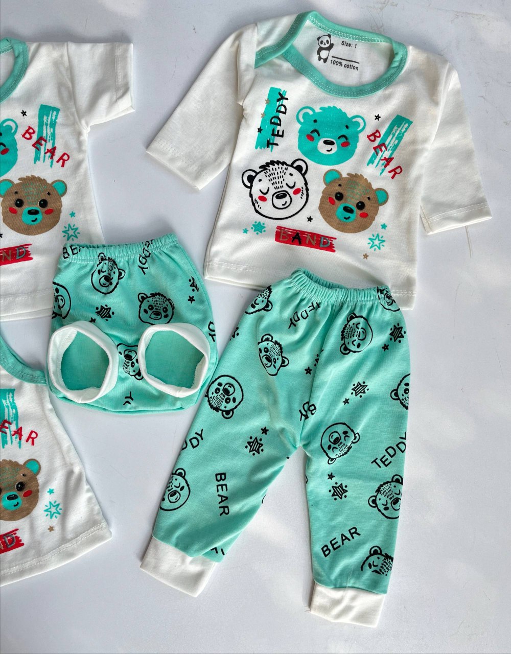 خانه پوشاک ست 5 تیکه پنج تکه تدی سبز ۱۳۰۱