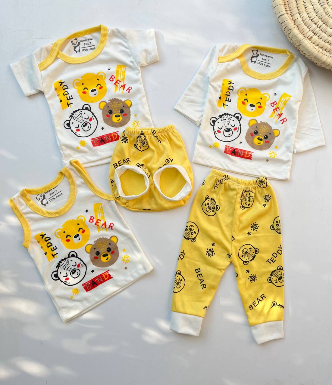 خانه پوشاک ست 5 تیکه پنج تکه خرس زرد ۱۳۰۱